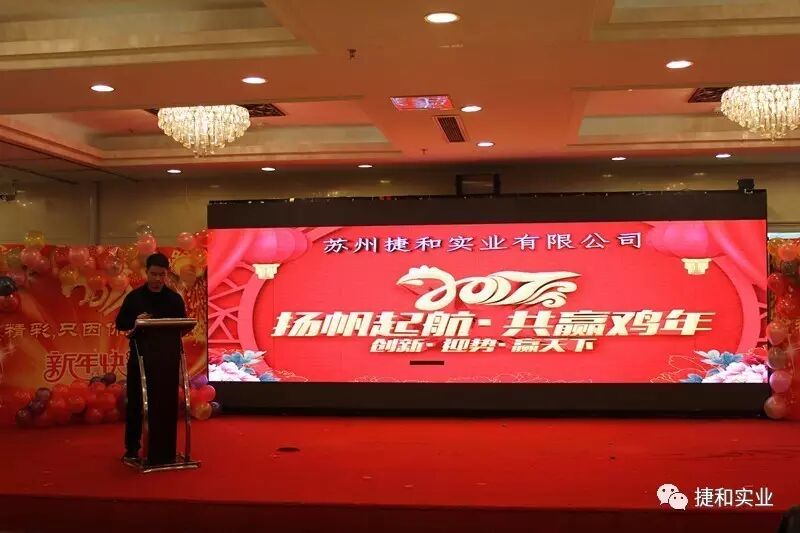 2017年1月16日,苏州捷和实业有限公司年会在苏州相城区渭塘镇珠宝大酒家举行,参加年会的有捷和合作客户、捷和供应商以及捷和全体员工。
